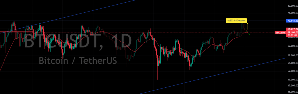 Pegando também as últimas 3 eleições, o Bitcoin tem um histórico excelente, independente do presidente eleito. Todas as vezes o mercado estava em uma tendência de alta, no meio de seu ciclo e pós halving. Nem um dos eventos mais importantes do ano conseguiu mudar sua trajetória de alta.